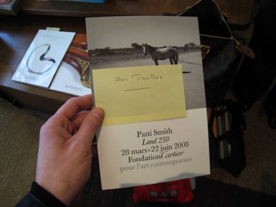 Valérie m'a mis de côté une invitation pour le vernissage de Patti Smith à la Fondation Cartier