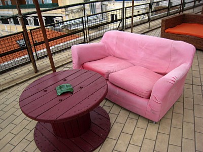 La vue. Je remarque la terrasse où nous étions tout à l'heure